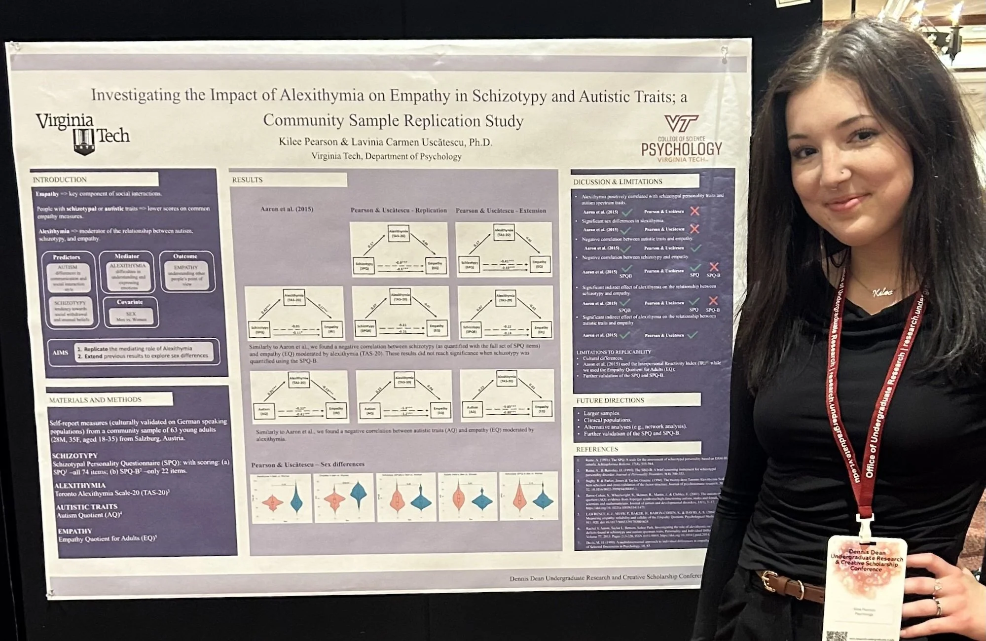 Spring 2025: Kilee Pearson, Bryanna Taylor, and Hunter Tufarelli presented posters at the 2025 Dennis Dean Undergraduate Research and Creative Scholarship Conference.